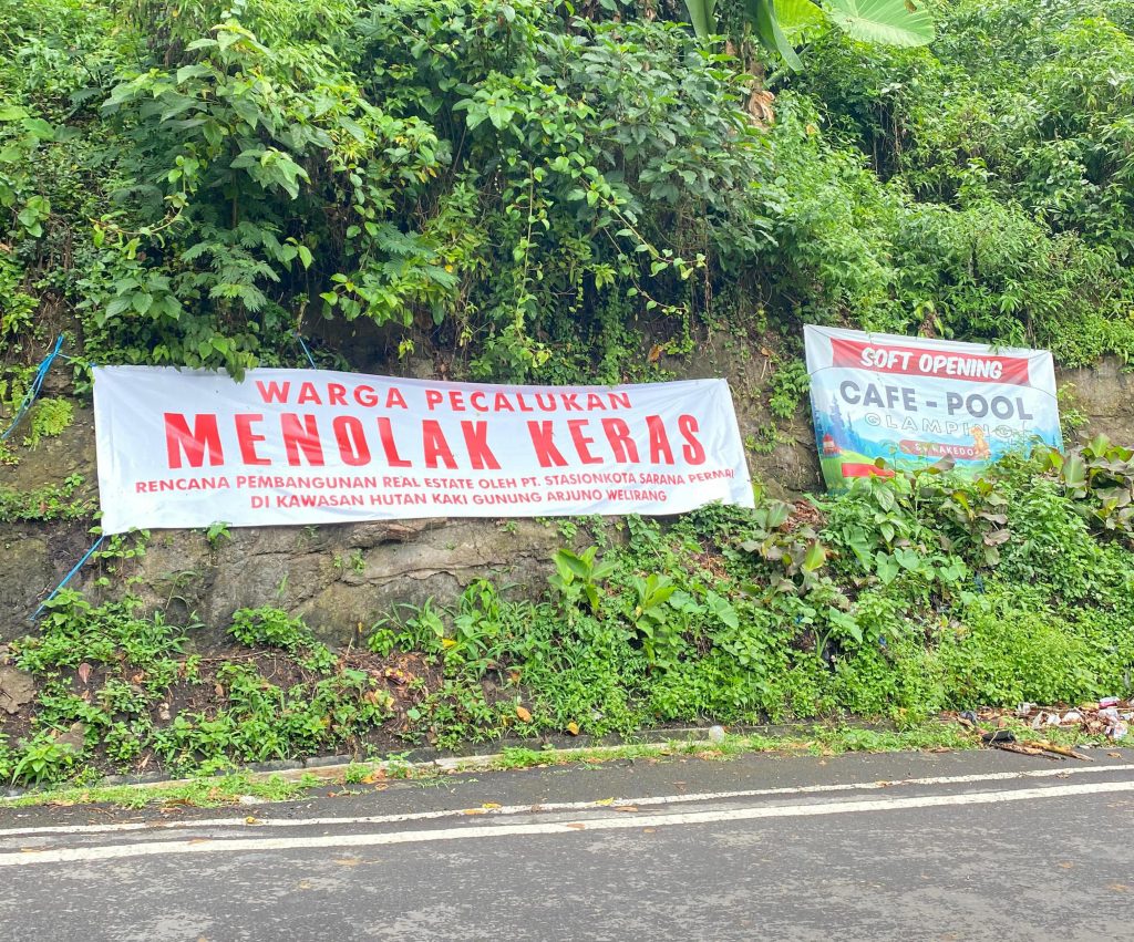 Sejumlah warga di wilayah Prigen dan Pecalukan, Kecamatan Prigen, Kabupaten Pasuruan, Jawa Timur, ramai-ramai memasang banner dan spanduk penolakan terhadap rencana pembangunan proyek real estate yang akan berdiri di kawasan hutan kaki Gunung Arjuno–Welirang. Aksi pemasangan banner ini tercatat di beberapa titik strategis sepanjang jalan menuju Tretes.